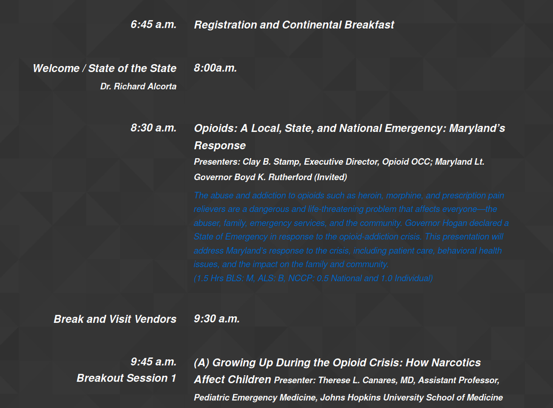 The schedule was designed to be accessibly and easy to look at. A modern dark grey geometric pattern was used to reduce strain on attendees eyes, assuming this section would be accessed more than any other on the site. A white larger than average font was used to provide stark contrast to allowing the text to more easily be seen on smaller screens like mobile devices. Each class was staggered and offset allowing sections to be quickly glaced over. All of this put together allowed the site to be great looking on desktops while being extremely functional for tablets or mobile devices even when moving between talks during the conference. At the end of the seminar registration period it was the registration solution saved many hours of time.